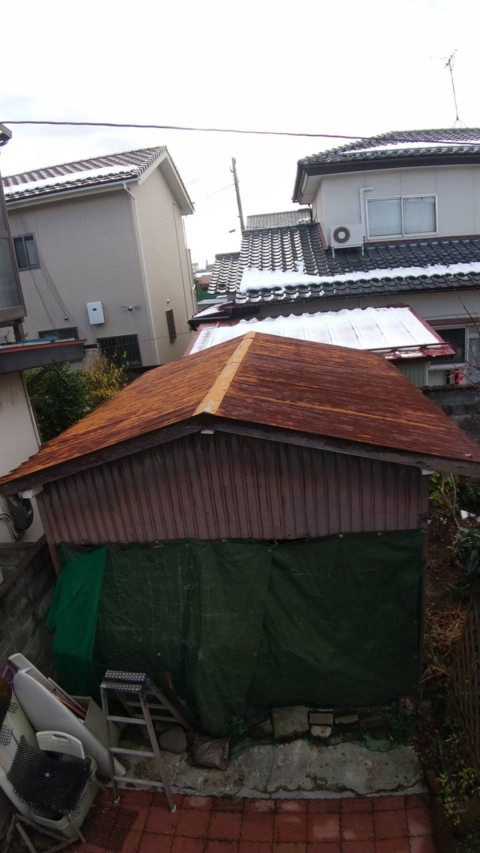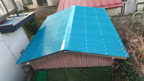 錆びが酷い小屋の屋根を波板板金で施工しました。