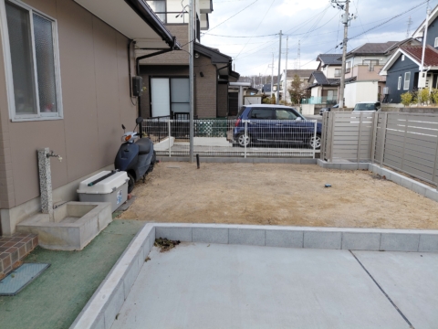 今回は、植栽を撤去して、ブロック、フェンスに交換工事、コンクリート打設工事が完了しました!